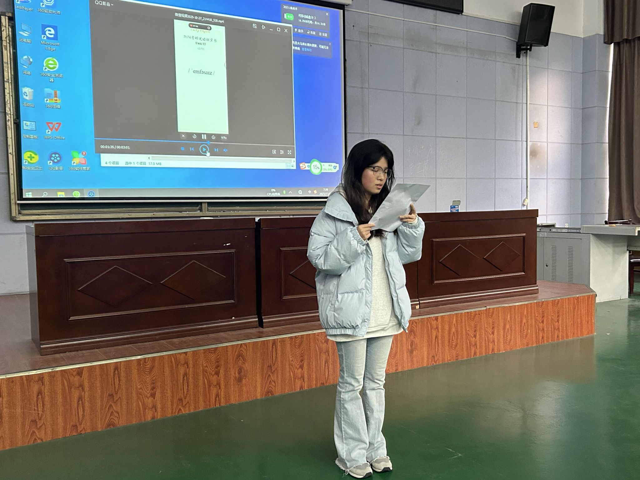 音乐表演2311班的廖子君诵读《谁是最可爱的人》,致敬保家卫国、无私奉献的英雄群体。