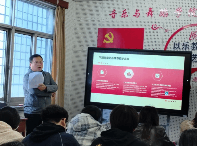 (通讯员 张博谦)为切实加强入党积极分子的思想政治教育,深化对党章的理解与认识,11月5日,音乐与舞蹈学院在S1一站式学生社区顺利开展第34期入党积极分子第二次党课。本次党课由院党委副书记姚朓朓主讲。