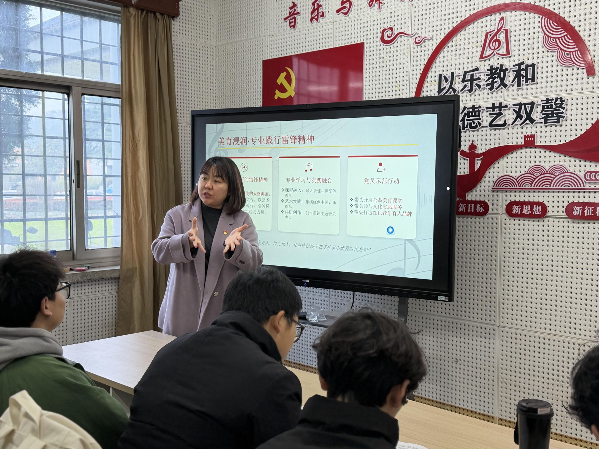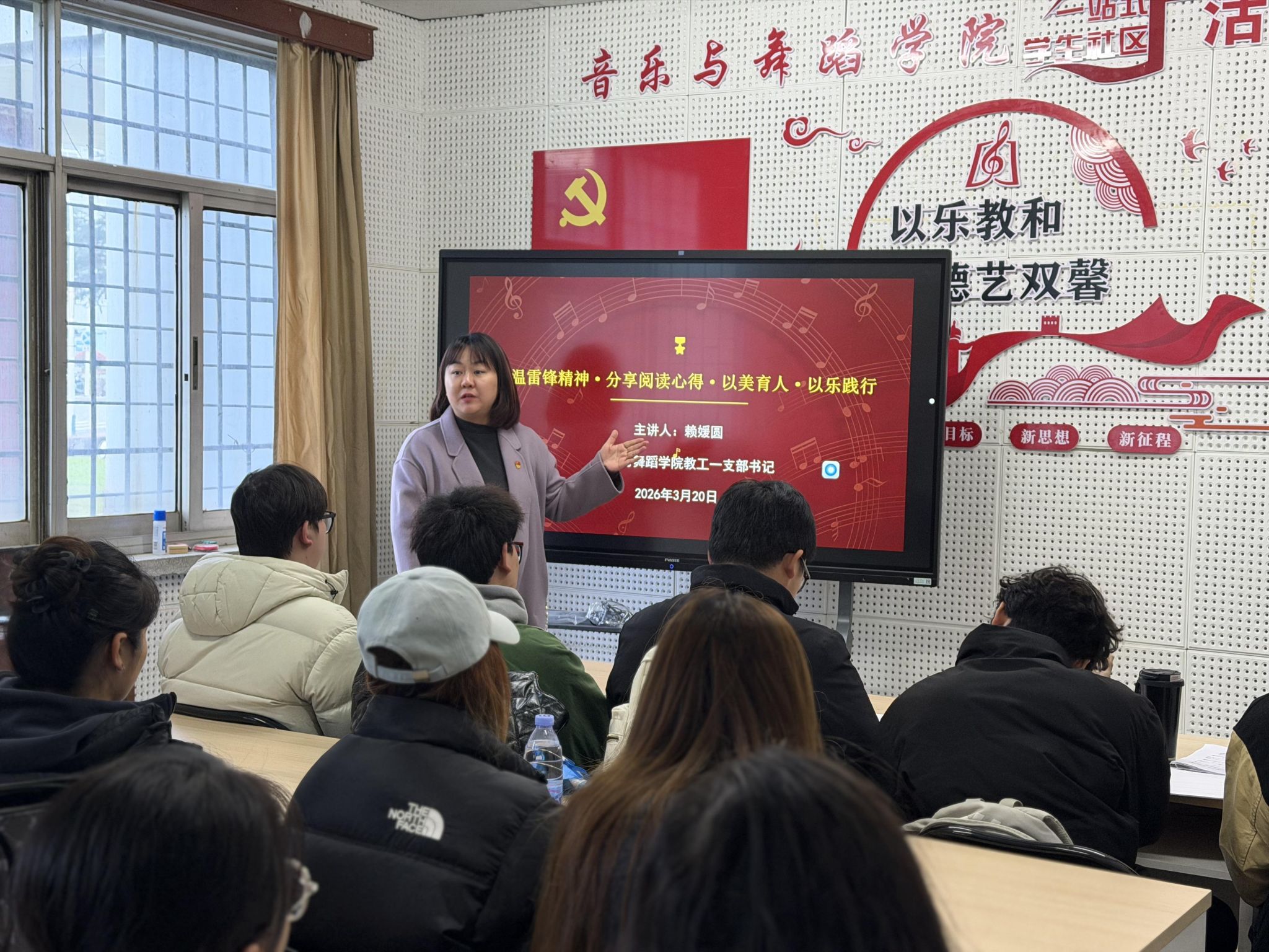(通讯员:张博谦)2026年3月19日,音乐与舞蹈学院举办“重温雷锋精神·以美育人·以乐践行”读书品乐会,此次由教工一支部书记赖媛圆作为主讲嘉宾,学生党支联席会组织在校入党积极分子参与。