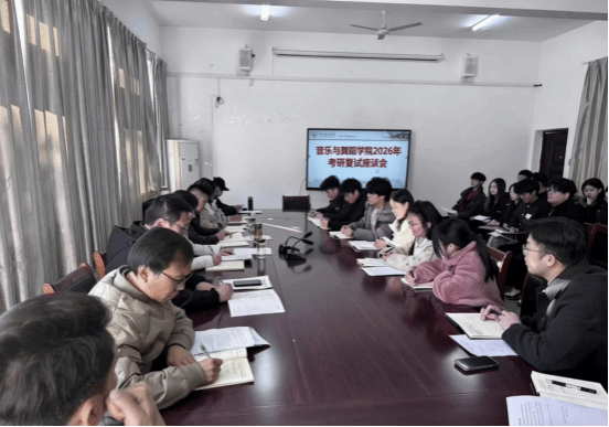 (通讯员张博谦)为精准助力2026届考研学子破解复试备考难题、明晰专业考核要点,增强应试信心,3月12日下午,音乐与舞蹈学院在学院3栋二楼召开2026年考研复试专题座谈会。学院党委书记姜俊毅、副书记姚朏朏、副院长李碧高,各专业教研室主任、骨干教师代表及进入考研复试阶段的学生参加了本次座谈会,会议由姚朏朏主持